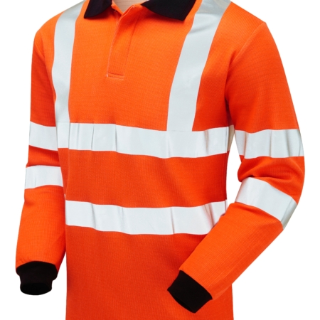 • Long Sleeve Polo Shirt Orange – Recycled Content