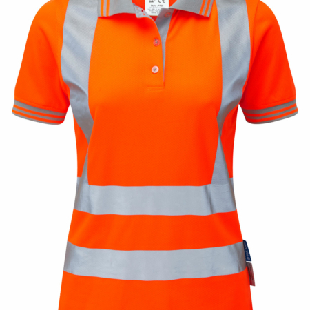 • Women’s Short Sleeve Polo Shirt Orange – Recycled Content