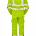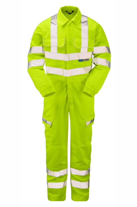 Constructed from a durable polyester-cotton blend with stain-resistant Teflon™ DWR, this coverall is built for toughness with triple-stitched seams, reinforced stress points, and sturdy twin needle stitching. It includes multiple secure pockets, kneepad compartments, and an elasticated waistband and cuffs for a comfortable, secure fit. Woven polyester cotton blend Teflon™ DWR treatment for stain resistance Sewn-on, solid reflective tape Additional reflective detail at pockets Triple stitched inseam for durability Twin needle stitching throughout and bar tacks at stress points to create a tough garment Shirt collar Two patch pockets with flaps at chest Two side pockets, giving access to undergarments One rear patch pocket with flap Two spacious bellowed cargo pockets at lower leg Kneepad compartments (purchase kneepads separately) Waistband elasticated at back for a secure fit Elasticated cuffs with adjustable, press stud fastening YKK 2-way centre front zip Concealed press stud storm flap Radio loop at chest pocket