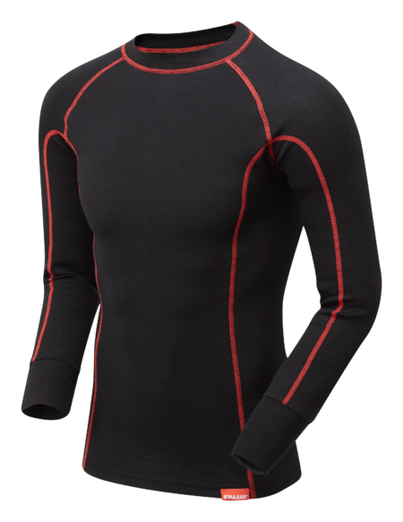 Lightweight, inherently flame-retardant long sleeve top with Aramid thread, flatlock seams, and knitted cuffs. Certified to EN standards for arc, flame, and anti-static protection. Flame-retardant Aramid thread used throughout Flatlock stitch construction for comfort Inherently flame-retardant fabrics Knitted collar and cuffs Visible EN performance standard transfer Interlock knit fabric construction